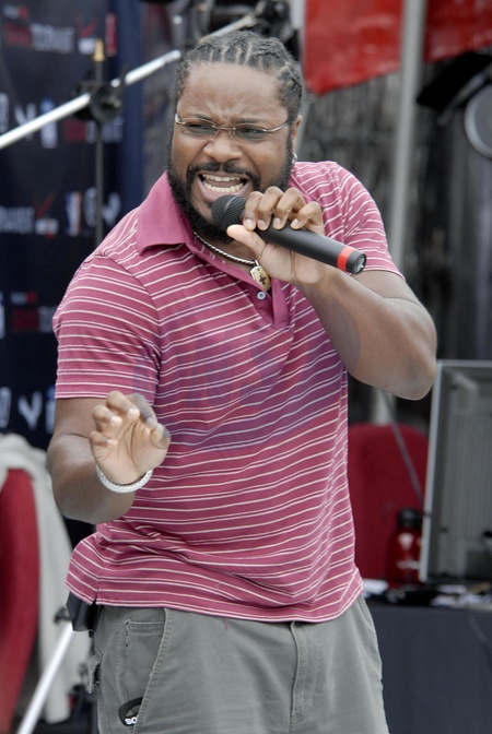 Malcolm-Jamal Warner on stage at the Celebrity Pro-Am Video Game Tournament on Hermosa Beach