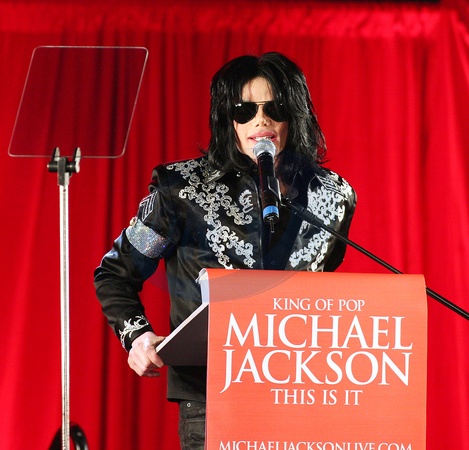 Michael Jackson na konferencji prasowej zapowiedzial serie koncertow w londynskiej O2 Arena, Londyn