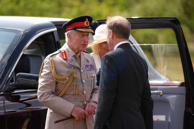 King Charles III arriving for the national Service of Remembrance, hosted by the Royal British Legion in partnership with the Government, to mark the 80th Anniversary of VJ Day at the National Memorial Arboretum in Alrewas, Staffordshire. Picture date: Friday August 15, 2025., Credit:Joe Giddens / Avalon
