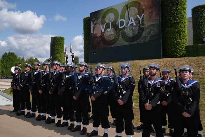Members of the Royal Navy at the national Service of Remembrance, hosted by the Royal British Legion in partnership with the Government, to mark the 80th Anniversary of VJ Day at the National Memorial Arboretum in Alrewas, Staffordshire. Picture date: Friday August 15, 2025., Credit:Joe Giddens / Avalon