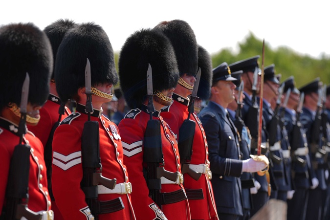 Members of the Grenadier Guards form a guard of honour at the national Service of Remembrance, hosted by the Royal British Legion in partnership with the Government, to mark the 80th Anniversary of VJ Day at the National Memorial Arboretum in Alrewas, Staffordshire. Picture date: Friday August 15, 2025., Credit:Joe Giddens / Avalon