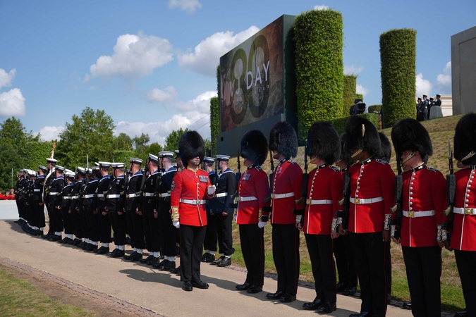 Members of the Grenadier Guards form a guard of honour at the national Service of Remembrance, hosted by the Royal British Legion in partnership with the Government, to mark the 80th Anniversary of VJ Day at the National Memorial Arboretum in Alrewas, Staffordshire. Picture date: Friday August 15, 2025., Credit:Joe Giddens / Avalon