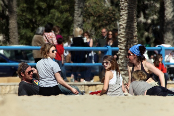 Rhys Ifans odpoczywa z przyjaciolmi na plazy w Alicante, Hiszpania