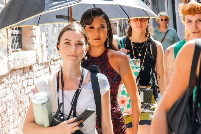 Lily Collins during the filming of the television series Emily in Paris 5, Venice, Italy 19 August 2025
