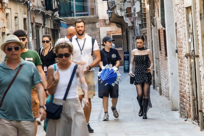 Lily Collins during the filming of the television series Emily in Paris 5, Venice, Italy 19 August 2025, Credit:Mirco Toniolo/AGF / Avalon