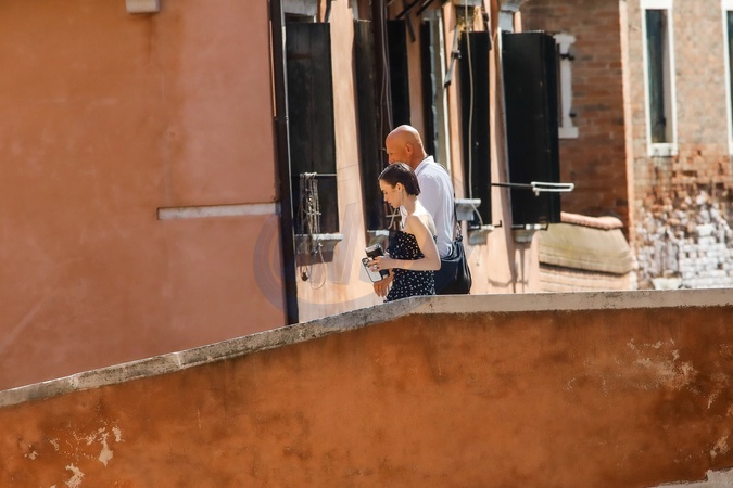 Lily Collins during the filming of the television series Emily in Paris 5, Venice, Italy 19 August 2025