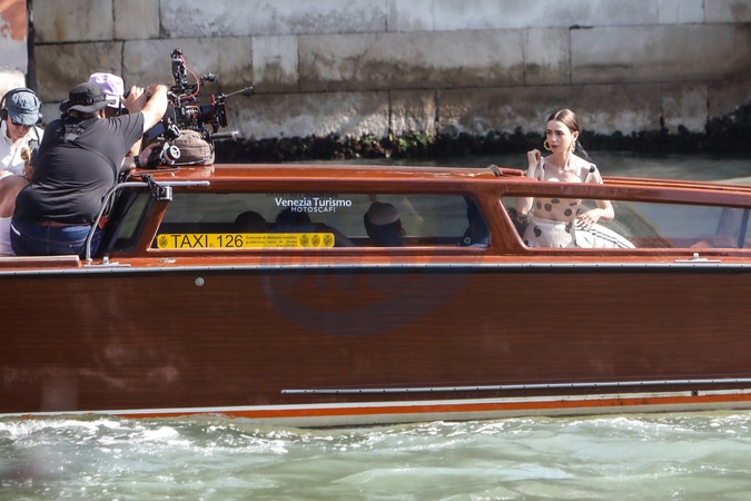 Lily Collins during the filming of the television series Emily in Paris 5, Venice, Italy 19 August 2025