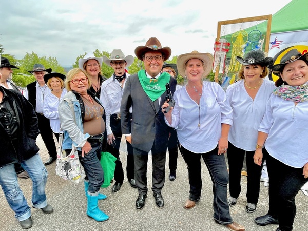 Exclusif - Prix Spécial - No Web - François Hollande, venu tester la danse country avec le club local, à l'arrivée de la 3ème étape de la 58ème édition du Tour Du Limousin-Périgord Nouvelle Aquitaine à Masseret (Corrèze), France, le 21 août 2025. © Fabien Faure/Bestimage No Web pour la Belgique et la Suisse Exclusive - WEB MUST CALL FOR PRICING - For Germany Call For Price - Former French President François Hollande, who came to try out country dancing with the local club, at the finish of the 3rd stage of the 58th edition of the Tour Du Limousin-Périgord Nouvelle Aquitaine in Masseret (Corrèze), France, on August 21, 2025. © Fabien Faure/Bestimage