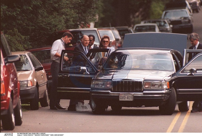 Rétro - Décès du diamantaire belge Maurice Tempelsman, dernier compagnon de Jackie Kennedy-Onassis - "JACKIE ONASSIS" "MAURICE TEMPLESMAN" "JOHN-JOHN KENNEDY" RENTRE DANS UNE VOITURE "PLAN LARGE"