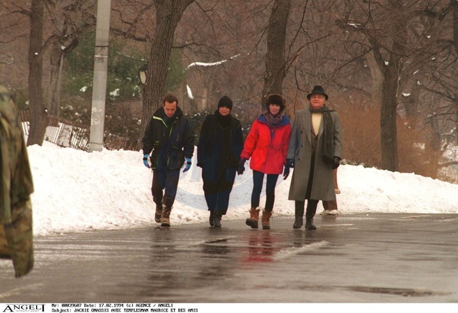 Rétro - Décès du diamantaire belge Maurice Tempelsman, dernier compagnon de Jackie Kennedy-Onassis - JACKIE ONASSIS, MAURICE TEMPLESMAN ET DES AMIS SE PROMENENT DANS CENTRAL PARK