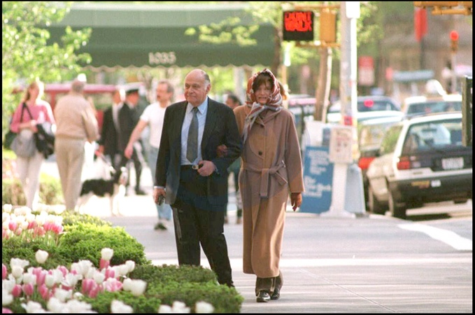 Rétro - Décès du diamantaire belge Maurice Tempelsman, dernier compagnon de Jackie Kennedy-Onassis - JACKIE ONASSIS KENNEDY QUELQUES SEMAINES APRES SA SORTIE D' HOPITAL DANS LES RUES DE NEW YORK AVEC MAURICE TEMPLESMAN