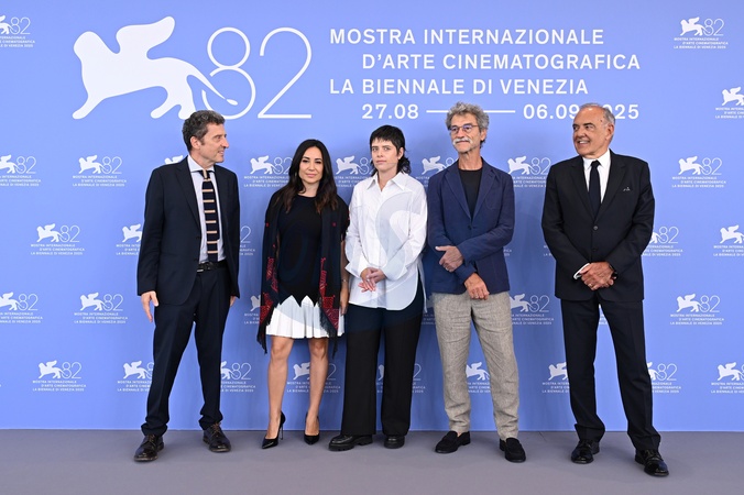 82nd Venice International Film Festival. Photocall for the 'Luigi De Laurentiis' Debut Film Jury. In the photo Silvio Soldini, Erige Sheiri, Carlotte Wells Alberto Barbera, Pietrangelo Buttafuoco. . Venice, Italy 27 August 2025, Credit:Maria Laura Antonelli / Avalon