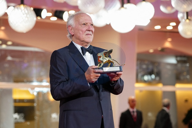 Werner Herzog poses with Golden Lion for Lifetime Achievement Award after the opening ceremony during the 82nd Venice International Film Festival on August 27, 2025 in Venice, Italy. (Photo by Lucia Sabatelli / Bestimage) EDITORIAL USE ONLY