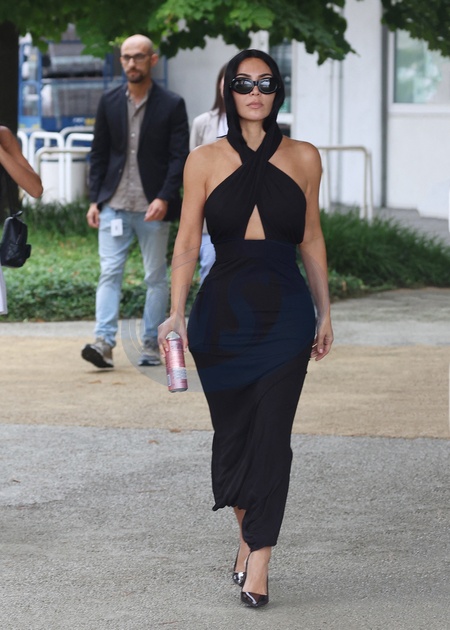 Kim Kardashian przybywa na lotnisko na 82. Międzynarodowy Festiwal Filmowy w Wenecji (Mostra)
