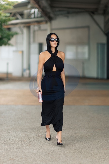 Kim Kardashian przybywa na lotnisko na 82. Międzynarodowy Festiwal Filmowy w Wenecji (Mostra)