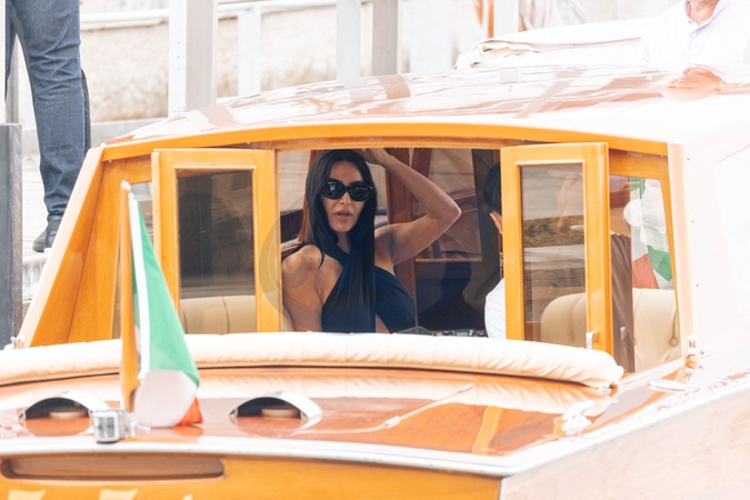 Kim Kardashian przybywa na lotnisko na 82. Międzynarodowy Festiwal Filmowy w Wenecji (Mostra)