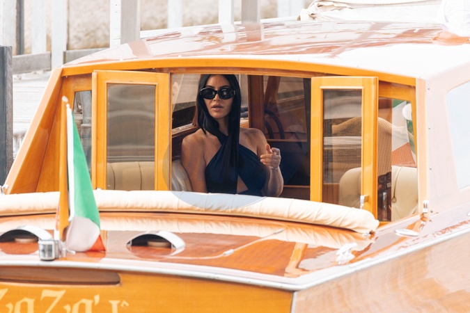 Kim Kardashian przybywa na lotnisko na 82. Międzynarodowy Festiwal Filmowy w Wenecji (Mostra)