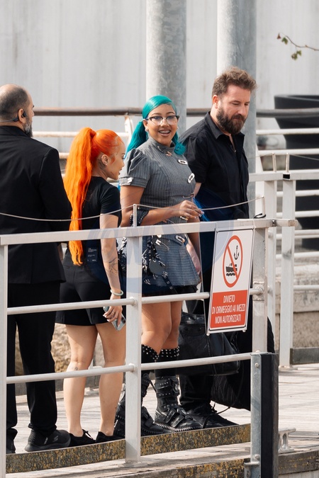 North West prend un bateau-taxi en direction du 82ème Festival International du Film de Venise (Mostra) le 28 août 2025. North West takes a water taxi to the 82nd Venice International Film Festival (Mostra) on August 28, 2025.