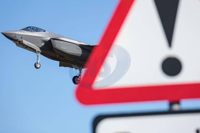 A USAF F35 assigned to the 48th Fighter Wing conduct a combat readiness exercise at RAF Lakenheath, Lakenheath, United Kingdom, 28th August 2025, Credit:Seth Rose/News Images / Avalon