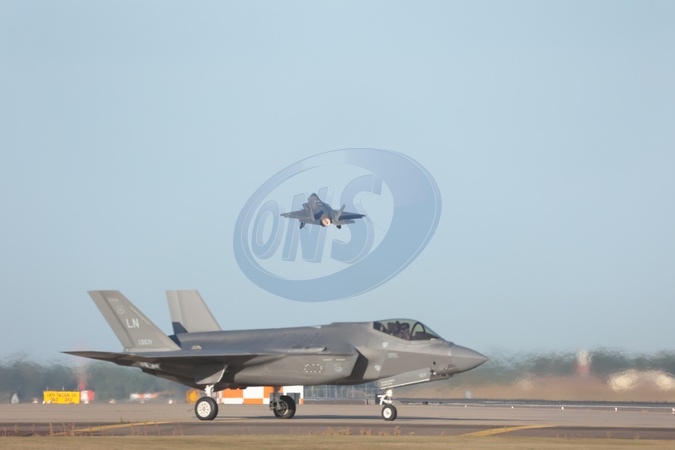 A USAF F35 assigned to the 48th Fighter Wing conduct a combat readiness exercise at RAF Lakenheath, Lakenheath, United Kingdom, 28th August 2025, Credit:Seth Rose/News Images / Avalon