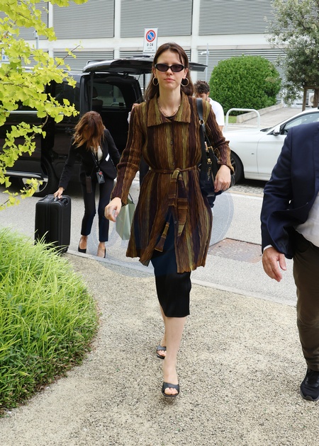 Mia Goth arrive à l'aéroport de Venise pour le 82ème Festival International du Film de Venise (La Mostra),
