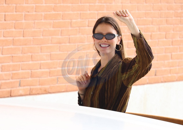 Mia Goth arrive à l'aéroport de Venise pour le 82ème Festival International du Film de Venise (La Mostra),