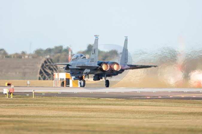A USAF F15 assigned to the 48th Fighter Wing conducts a combat readiness exercise at RAF Lakenheath, Lakenheath, United Kingdom, 28th August 2025, Credit:Seth Rose/News Images / Avalon
