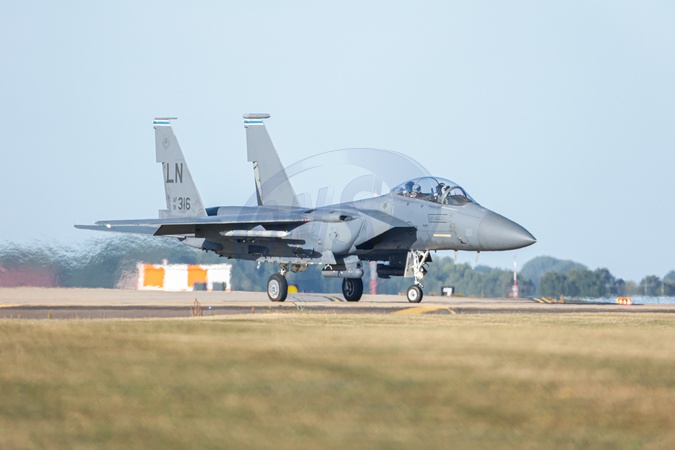 A USAF F15 assigned to the 48th Fighter Wing conducts a combat readiness exercise at RAF Lakenheath, Lakenheath, United Kingdom, 28th August 2025, Credit:Seth Rose/News Images / Avalon