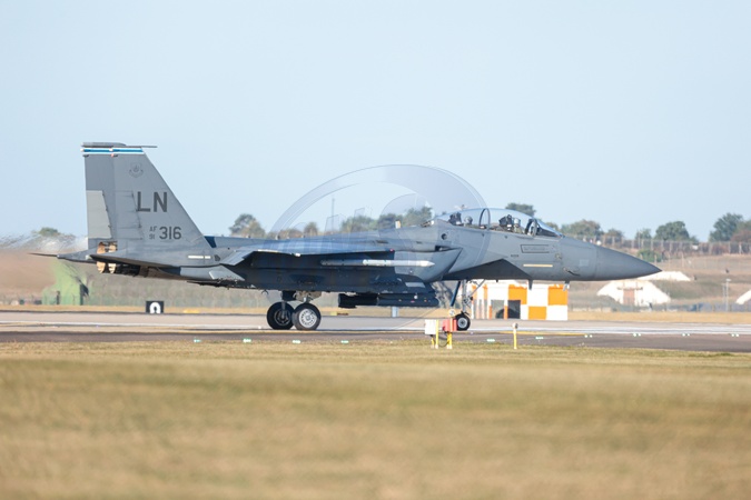 A USAF F15 assigned to the 48th Fighter Wing conducts a combat readiness exercise at RAF Lakenheath, Lakenheath, United Kingdom, 28th August 2025, Credit:Seth Rose/News Images / Avalon