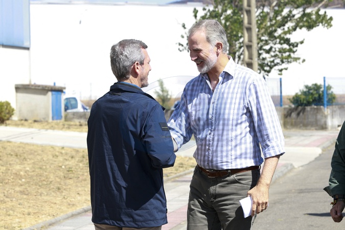 Le roi Felipe VI et la reine Letizia d’Espagne, visitent le centre de coordination du XIVème district forestier de Verín, l'exploitation d'élevage de Cualedro et l'école publique de Medeiros, après les incendies dramatiques