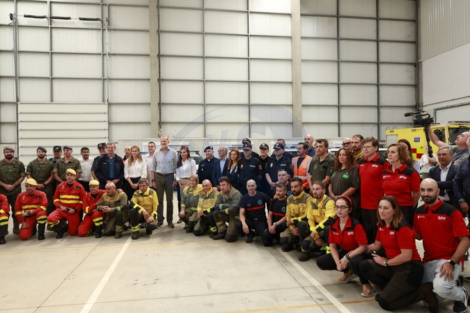 King Felipe VI and Queen Letizia (Le roi Felipe VI et la reine Letizia d'Espagne) visit Forest District XIV Coordination Center in Verin, Livestock farm in Cualedro and Medeiros public school, after the dramatic fires that have ravaged the are on August 28, 2025 in Ourense, Spain . © Casa de S.M. El Rey via Bestimage