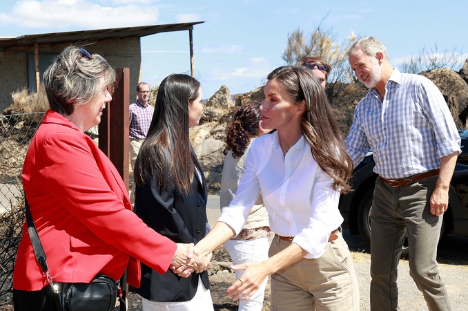 Le roi Felipe VI et la reine Letizia d’Espagne, visitent le centre de coordination du XIVème district forestier de Verín, l'exploitation d'élevage de Cualedro et l'école publique de Medeiros, après les incendies dramatiques
