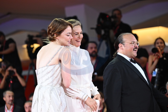Venice Biennale, 82nd Venice International Film Festival, red carpet for the film Bugonia.In the photo Emma Stone, Alicia Silverstone, Stavros Halkias, Credit:Maria Laura Antonelli / Avalon