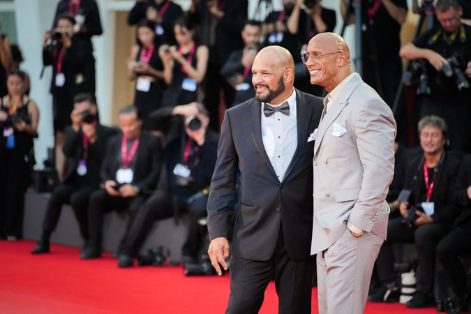 Dwayne Johnson and Mark Kerr attending The Smashing Machine red carpet during the 82nd Venice International Film Festival on September 1, 2025 in Venice, Italy.(Photo by Lucia Sabatelli / Bestimage) EDITORIAL USE ONLY