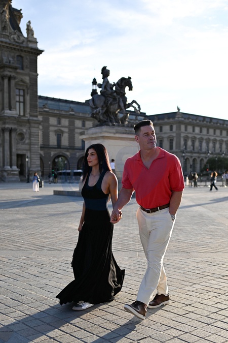John Cena i jego żona Shay Shariatzadeh spacerują po paryskim Luwrze