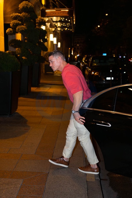 John Cena arrive à l'hôtel Four Seasons Hôtel George V à Paris
