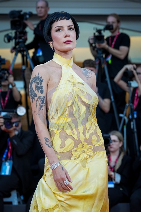 Halsey attends attends the "The Smashing Machine" red carpet during the 82nd Venice International Film Festival in Venice, Italy on 01 September 2025., Credit:Stefano Costantino TTL / Avalon
