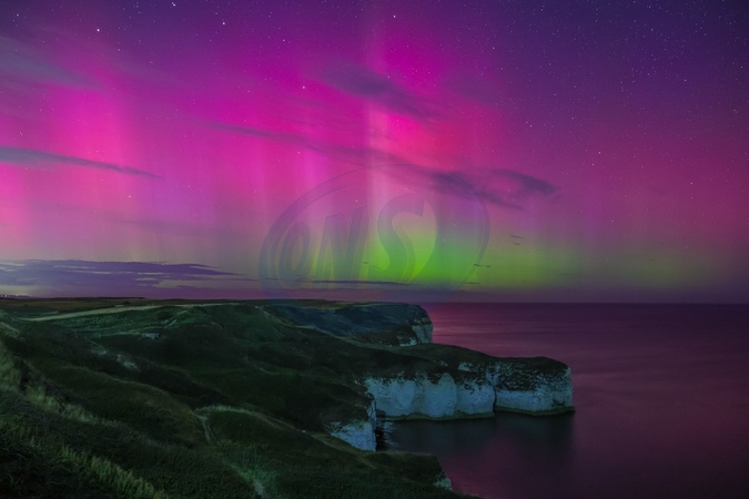 Northern Lights also know as the Aurora Borealis shines over Bempton Cliffs
