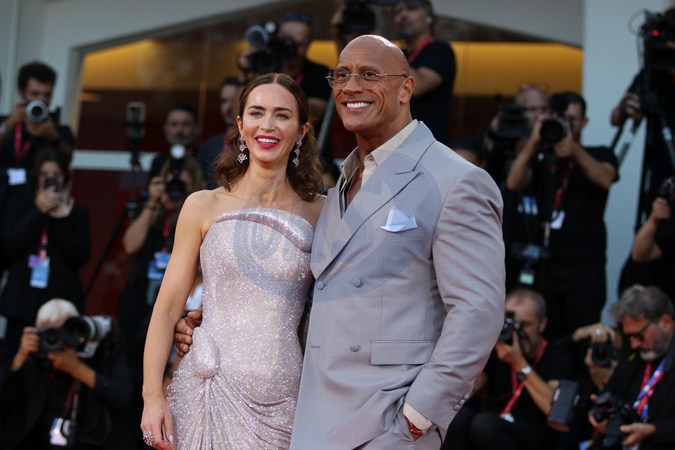 Europe, Italy, Lido di Venezia, September 01, 2025: Emily Blunt and Dwayne Johnson attend a red carpet for the movie 'The Smashing Machine' during the 82st Venice International Film Festival on September 01, 2025, in Venice, Italy., Credit:Ottavia Da Re / Avalon
