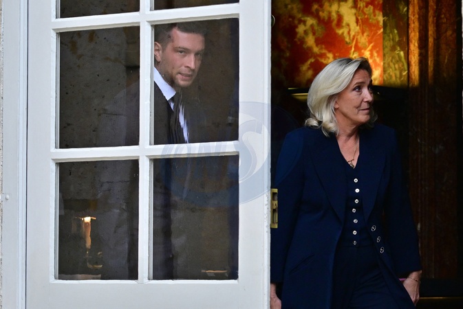 Jordan Bardella et Marine Le Pen après une réunion avec le Premier ministre dans le cadre de consultations politiques à l'Hôtel de Matignon à Paris
