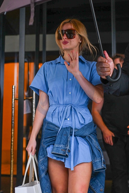 Exclusif - L'auteure-compositrice-interprète, actrice et influenceuse américaine Addison Rae, dans une tenue bleue Jaquemus associé à des bottes en daim rouge, sort de l'hôtel Costes pour se rendre à son concert au Zénith Paris – La Villette, à Paris, France, le 2 septembre 2025. © Yehiel Chekroune/Bestimage No Web pour la Belgique et la Suisse Exclusive - For Germany Call For Price - American singer-songwriter, actress and influencer Addison Rae, in a blue Jaquemus outfit paired with red suede boots, leaves the Costes Hotel on her way to her concert at Zenith Paris – La Villette, in Paris, France, on September 2, 2025.