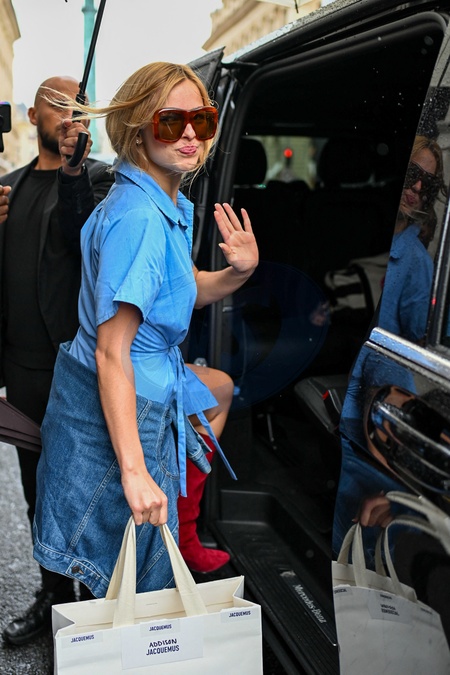 Addison Rae w stroju Jaquemusa opuszcza hotel Costes w drodze na koncert w paryskim klubie Zenith Paris – La Villette