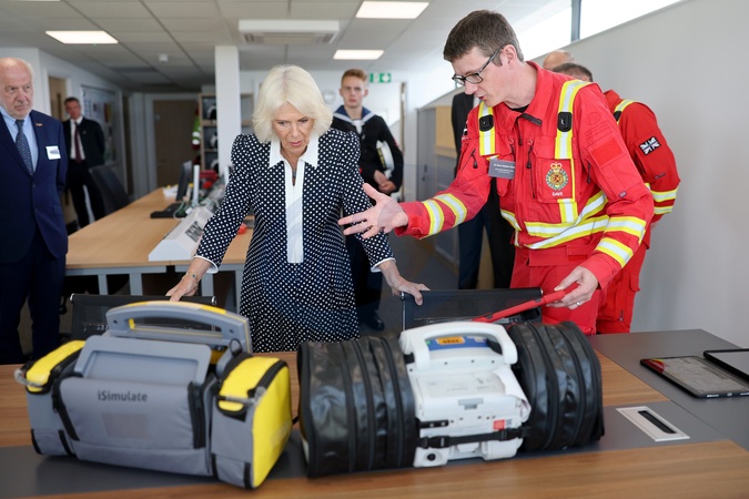 Newquay, UK, 02 September 2025: Queen Camilla meets members of the Air Ambulance medical team during her visit to Cornwall Air Ambulance Trust's Headquarters to open the charity's new operations unit in Newquay, England. Her Majesty has served as Patron of the Cornwall Air Ambulance since 2009., Credit:Chris Jackson / Avalon