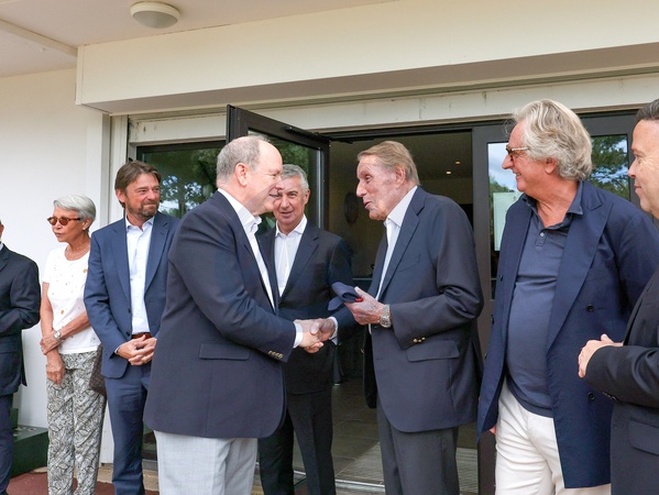 Exclusif - No Tabloïds - Le prince Albert II de Monaco et Michel Boeri lors de l'inauguration d'une pierre commémorative à Henry Rey (président du Monte-Carlo Golf Club de 1994 à 2025) au Monte-Carlo Golf Club de Monaco, ce mardi 2 septembre2025 à 11h30. © Claudia Albuquerque/Bestimage Exclusive - No Tabloïds - No Mail Online - Only for OK, Hello, Grazia in UK - Prince Albert II of Monaco at the inauguration of a commemorative stone for Henry Rey at the Monte-Carlo Golf Club in Monaco, this Tuesday, September 2, 2025 at 11:30 a.m. © Claudia Albuquerque/Bestimage