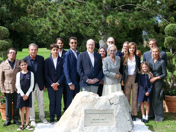 Książę Albert II z Monako podczas odsłonięcia kamienia pamiątkowego Henryka Reya w klubie golfowym Monte-Carlo w Monako.