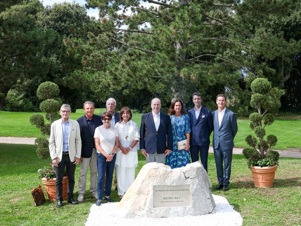 Exclusif - No Tabloïds - Michel Dotta (nouveau président du Monte-Carlo Golf Club), le prince Albert II de Monaco, Anthony Torriani (vice-président de l'Association Monégasque des Activités Financières) et guests lors de l'inauguration d'une pierre commémorative à Henry Rey (président du Monte-Carlo Golf Club de 1994 à 2025) au Monte-Carlo Golf Club de Monaco, ce mardi 2 septembre2025 à 11h30. © Claudia Albuquerque/Bestimage Exclusive - No Tabloïds - No Mail Online - Only for OK, Hello, Grazia in UK - Prince Albert II of Monaco at the inauguration of a commemorative stone for Henry Rey at the Monte-Carlo Golf Club in Monaco, this Tuesday, September 2, 2025 at 11:30 a.m. © Claudia Albuquerque/Bestimage