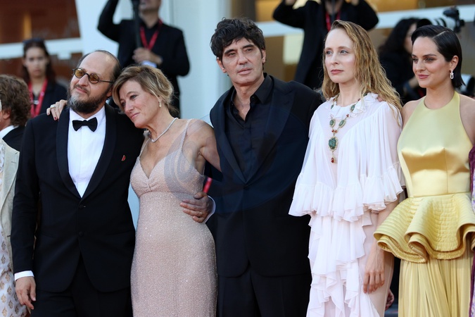 Europe, Italy, Lido di Venezia, September 03, 2025: Fausto Russo Alesi, Valeria Bruni Tedeschi, Pietro Marcello, Fanni Wrochna and Noemie Merlant attend a red carpet for the movie 'Duse' during the 82nd Venice International Film Festival on September 03, 2025, in Venice, Italy., Credit:Ottavia Da Re / Avalon