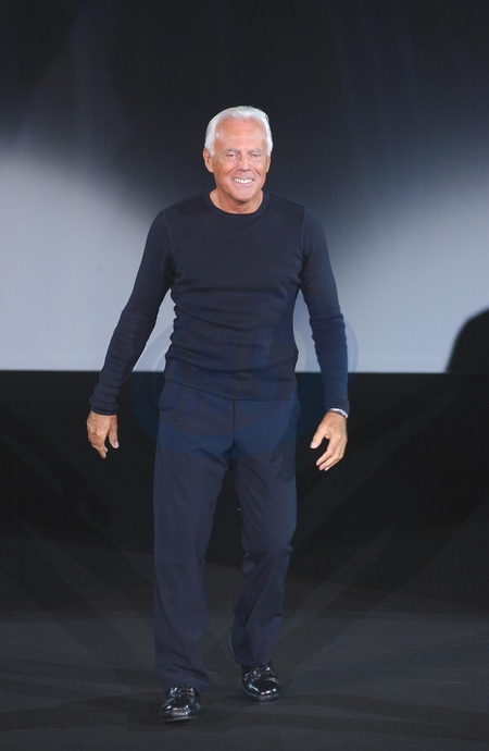 ITALIAN FASHION DESIGNER GIORGIO ARMANI AT THE SPRING SUMMER 2003 GIORGIO ARMANI FASHION SHOW DURING THE 2002 MILAN FASHION WEEK. 1ST OCTOBER 2002. PICTURES MARCO GALBIATI/ GRA, Credit:MARCO GALBIATI / Avalon