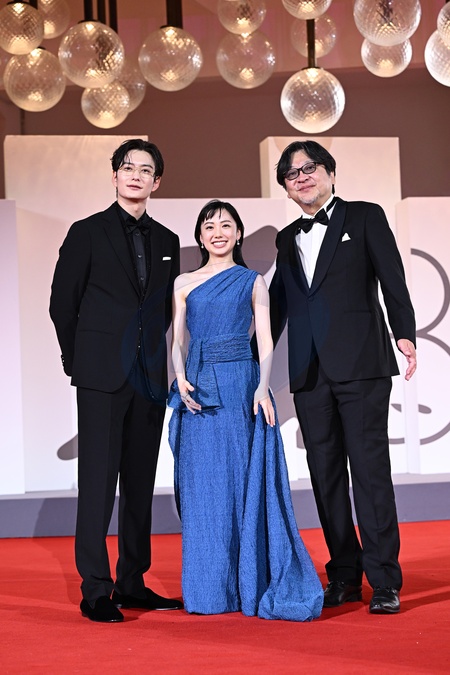Venice Biennale, 82nd Venice International Film Festival. Red carpet for the animated film Scarlet. In the photo the director Mamoru Hosoda, Mana Ashida (Scarlet, voice), Masaki Okada (Hijiri, voice) . Venice, Italy 04 September 2025, Credit:Maria Laura Antonelli / Avalon