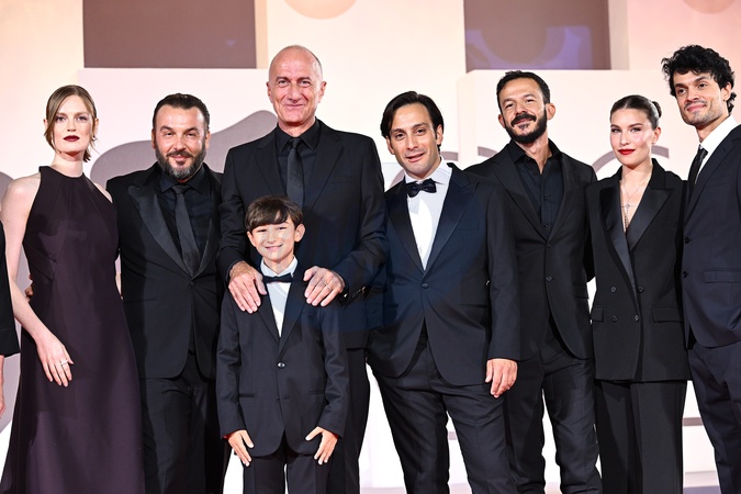 Venice Biennale, 82nd Venice International Film Festival. Red carpet for the film "Il Mostro." In the photo Director Stefano Sollima and the cast with Marco Bullitta, Valentino Mannias, Francesca Olia, Liliana Bottone, Antonio Tintis, Giordano Mannu, Giacomo Fadda . Venice, Italy 04 September 2025, Credit:Maria Laura Antonelli / Avalon